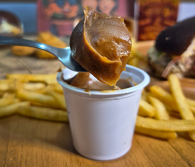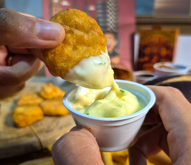 Os acompanhamentos também chamam atenção, como as batatas, “chickenzinhos” feitos com frango de verdade, perfeitos para mergulhar no barbecue ou na Sampanese.